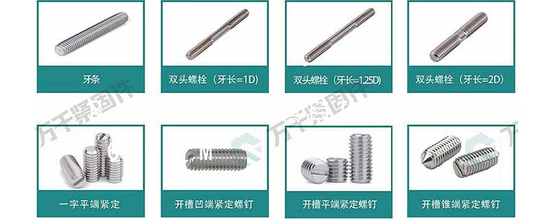 1.機(jī)螺釘 2.自攻螺釘 3.鉆尾螺釘 4.墻板釘 5.纖維板釘 6.木螺釘7.六角木螺釘 8.不脫出螺釘 9.組合螺釘 10.微型螺釘 11.家具螺釘 12.電子螺釘 13.鏈帶螺釘頭型 :1.六角頭(hexagon head)2.六角頭法蘭面(hexagon head with flange)3.方頭(square head)4.T形頭T head (hammer head5.